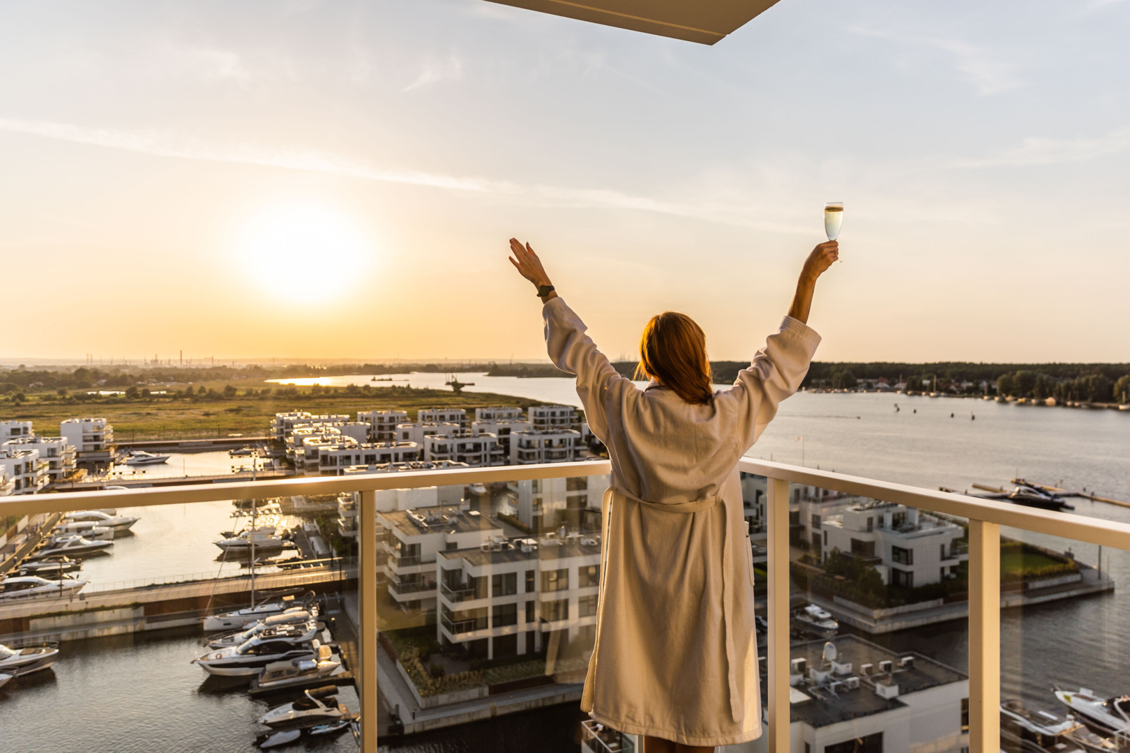 Pokoje Top Floor Signature mieszczą się na najwyższych piętrach hotelu dziewiątym i dziesiątym – oferując zjawiskowe widoki na marinę i Wyspę Sobieszewską, które można podziwiać z prywatnego balkonu, otulając się miękkim kocem przygotowanym specjalnie dla Gości. Ekskluzywna polityka Adults Only (16+) zapewnia gwarancję spokojnego i kameralnego pobytu.