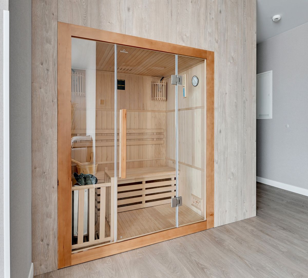 W wybranych apartamentach znajduje się prywatna sauna, która pozwala cieszyć się chwilą regeneracji w kameralnej atmosferze własnej przestrzeni. To idealne miejsce, by zwolnić tempo, rozgrzać ciało i pozwolić sobie na moment prawdziwego odprężenia.