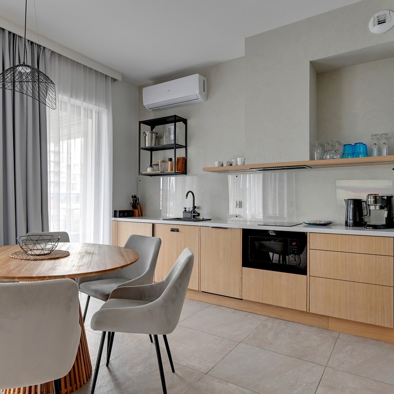 Apartamenty Marina Residence oferują przestrzeń od 26 do 81 m², zaprojektowaną z myślą o wygodzie i swobodzie podczas pobytu. Funkcjonalny układ pomieszczeń oraz w pełni wyposażone aneksy kuchenne sprawiają, że łatwo poczuć się tu jak u siebie.